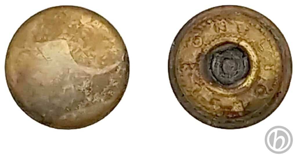Parte esterna di un bottone automatico. Sul lato interno è visibile l’incisione “★ LION ★ LION”.