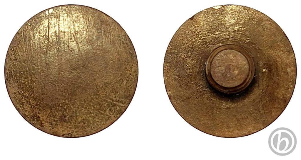 Probabile parte interna di un bottone a vite militare utilizzato come decorazione di spalline o berretti.