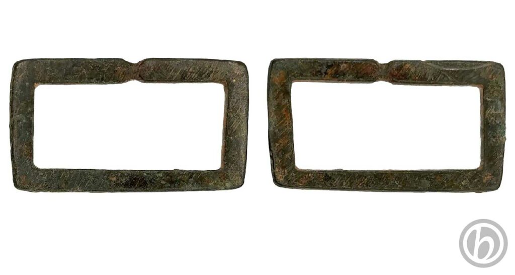 Appartenuta probabilmente all’esercito napoleonico, la fibbia si prensenta in buono stato di conservazione. Su uno dei lati lunghi è visibile un assottigliamento dove trovava posto l’ardiglione, ora mancante.
