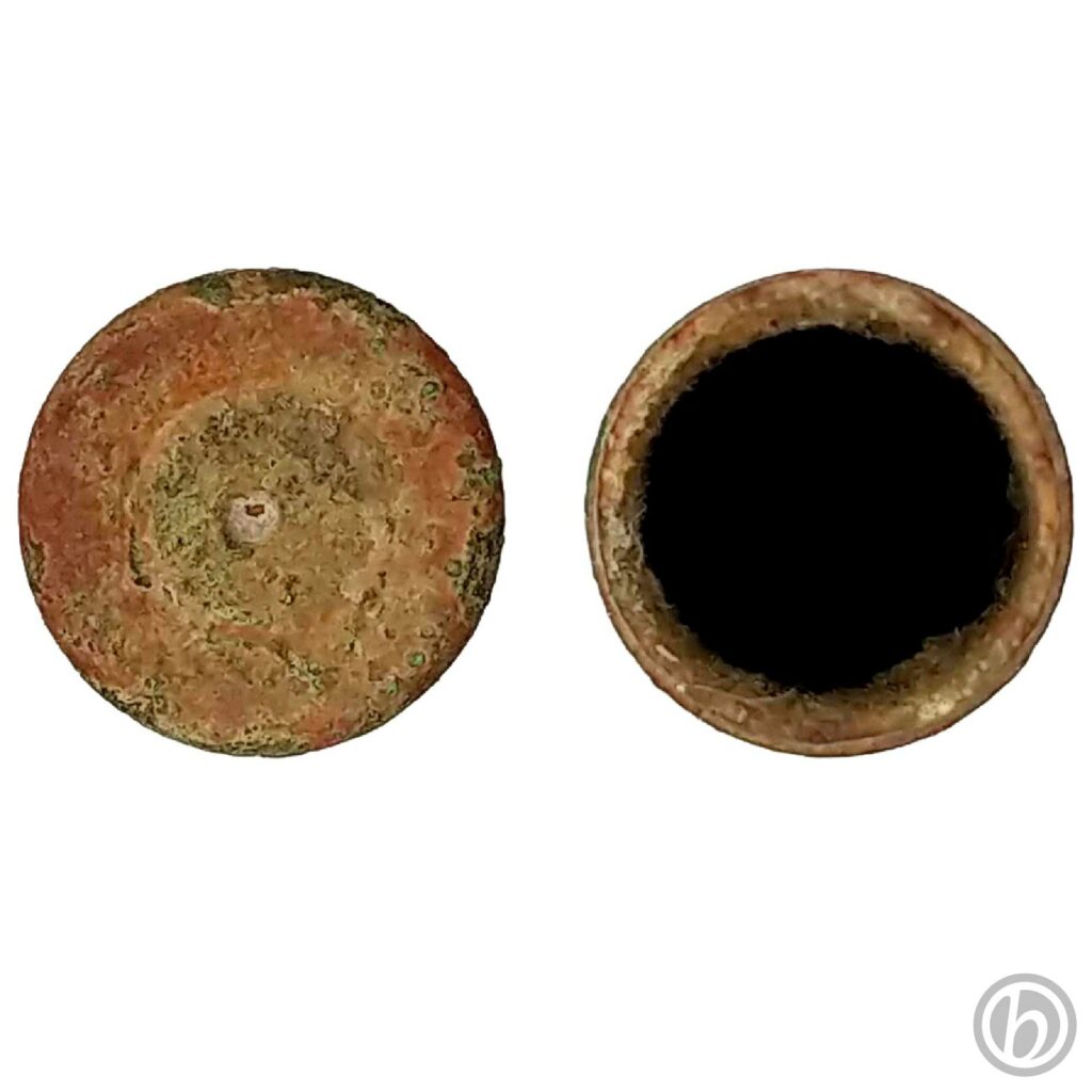 Frammento di bossolo di fucile calibro 9. Il fondello è rovinato e non sono leggibili eventuali incisioni.