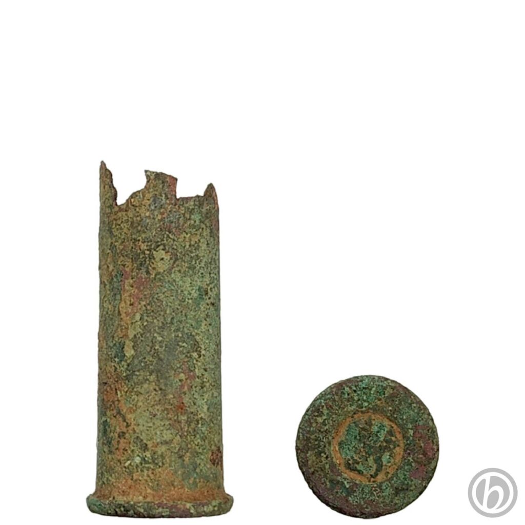 Frammento di bossolo di fucile calibro 9. Il fondello è rovinato e non sono leggibili le incisioni.