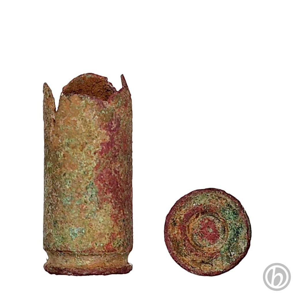 Il fondello è molto incrostato e sono appena intuibili le sigle del responsabile della produzione “B∙P”, dello stabilimento ed anno di produzione “C-900”.