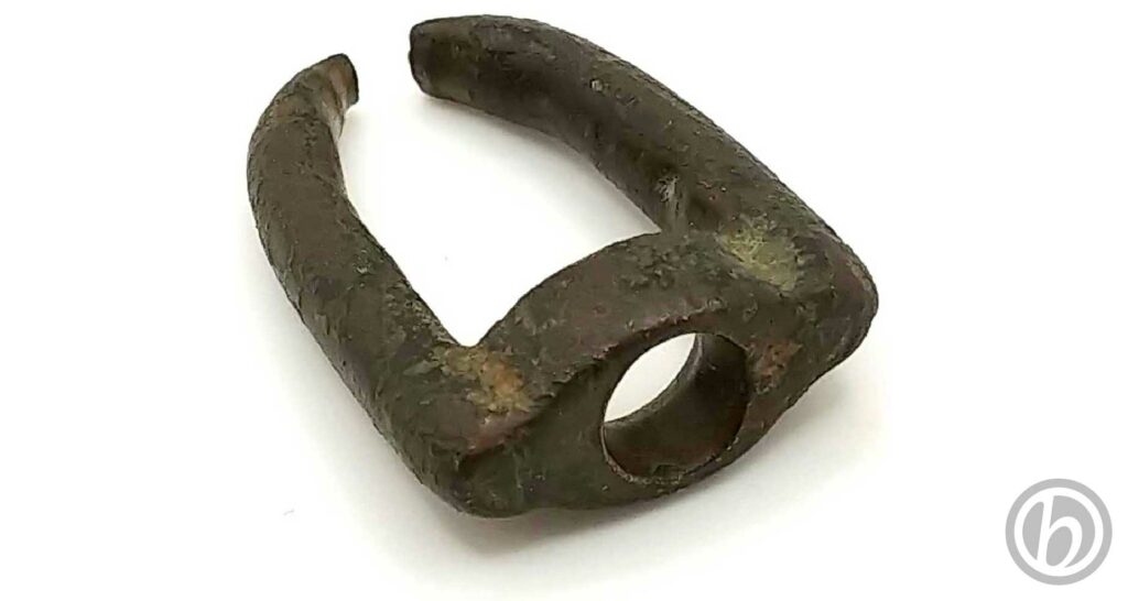 Probabile frammento dell’occhiello di un moschettone appartenuto a finimenti per animali.