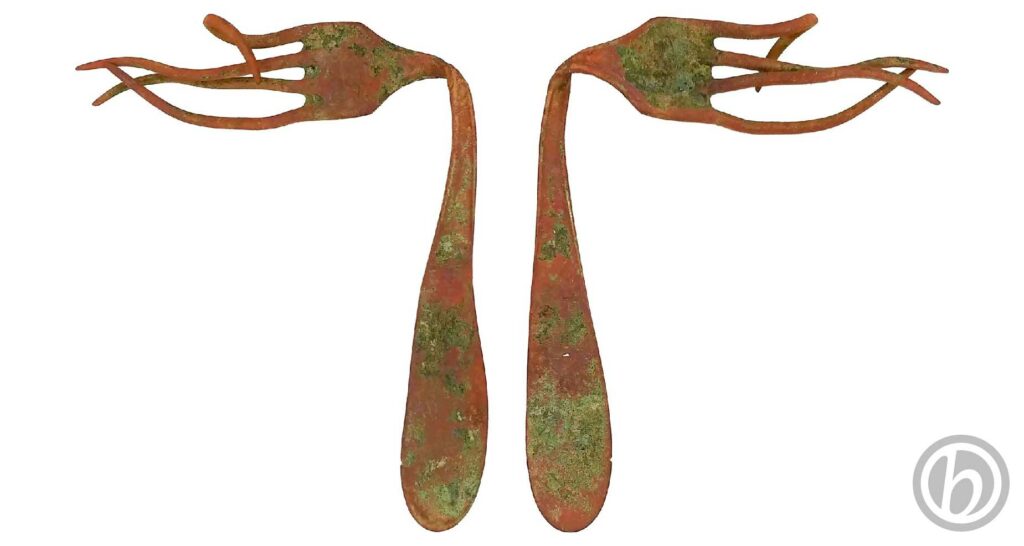 Forchetta deformata dai lavori agricoli. Presenta una semplice lavorazione sull’orlo del manico.